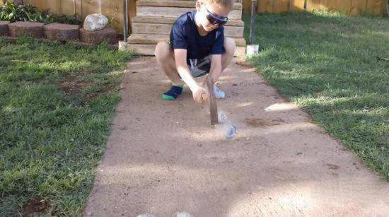 它的外层被一层矿物质给包裹着,放在手上发现它特别轻盈,而且感觉里面是空心的,男子和儿子便用锤子敲开一个进行查看。