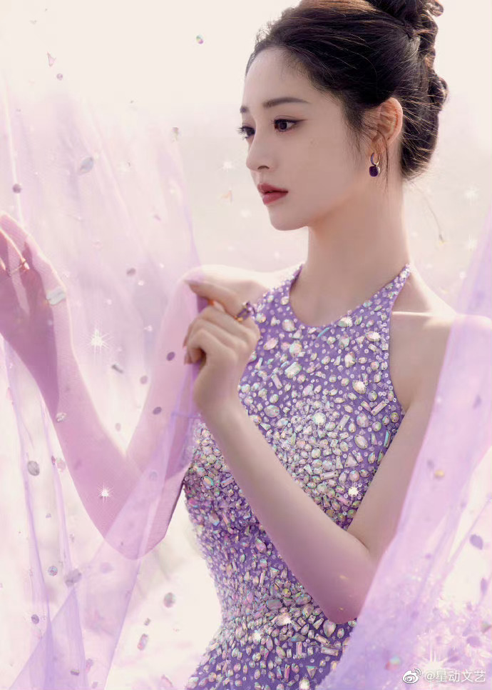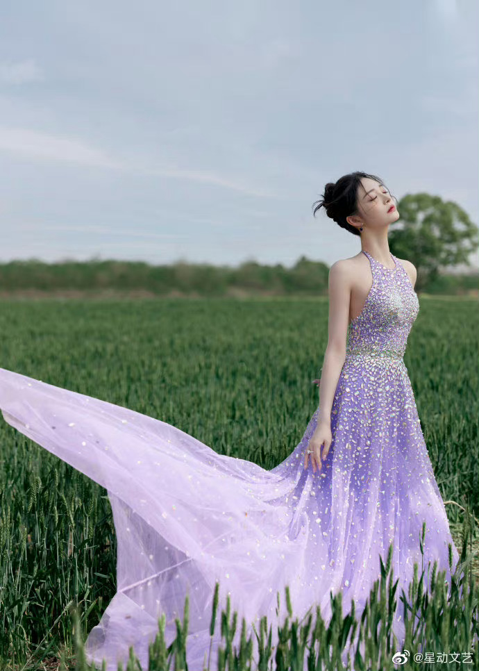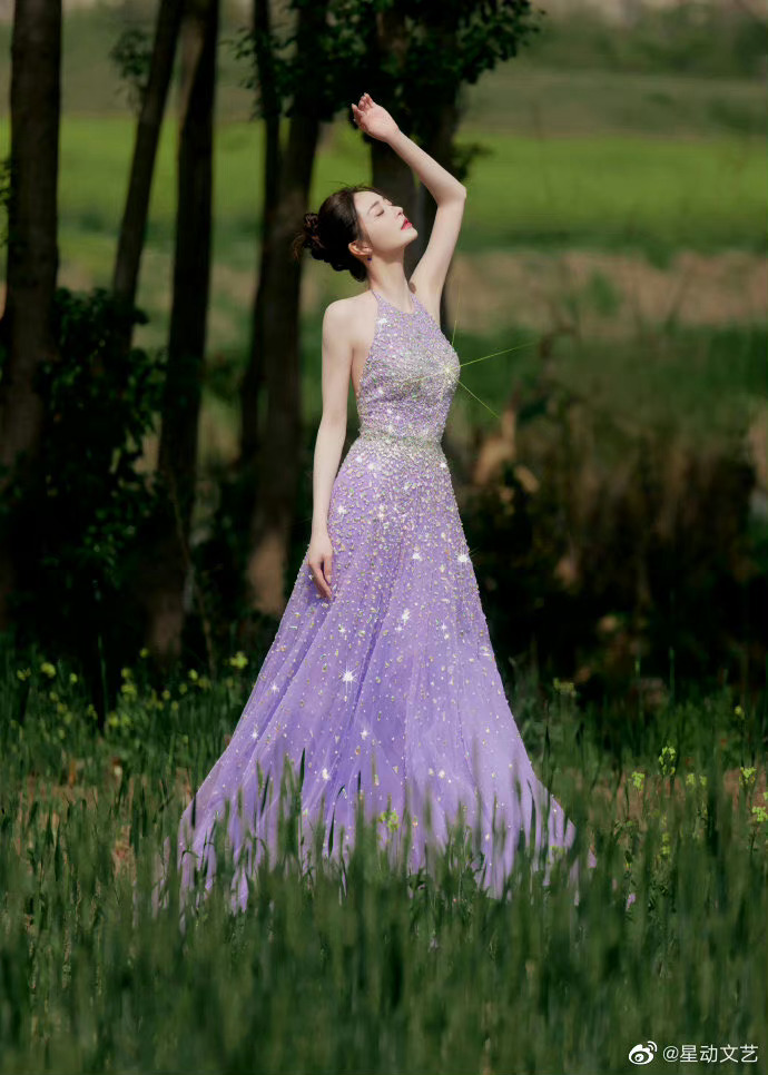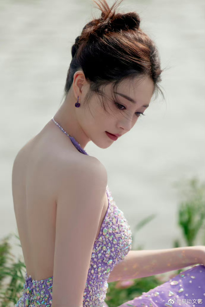 周洁琼紫色水晶露背裙,这谁能顶住啊,也太好看了吧!