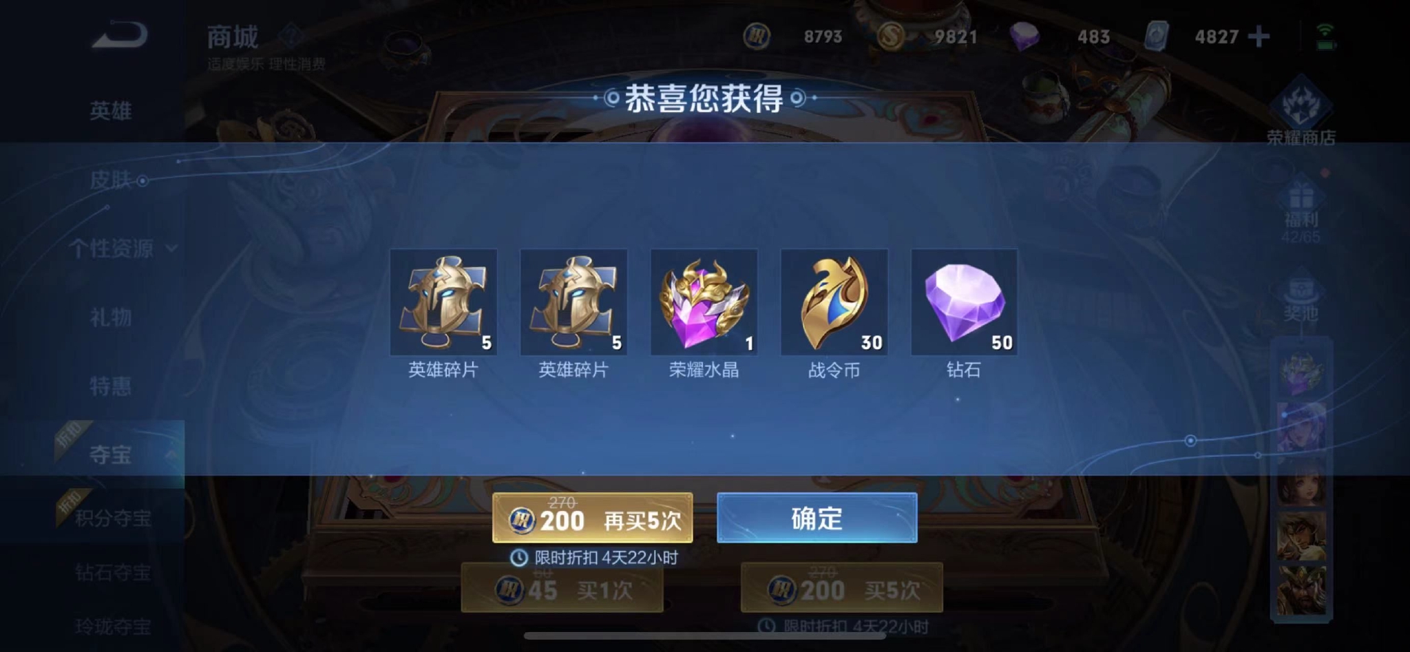 你们有在积分夺宝打折期间中过水晶吗?#王者荣耀##夏日游戏人大作战#