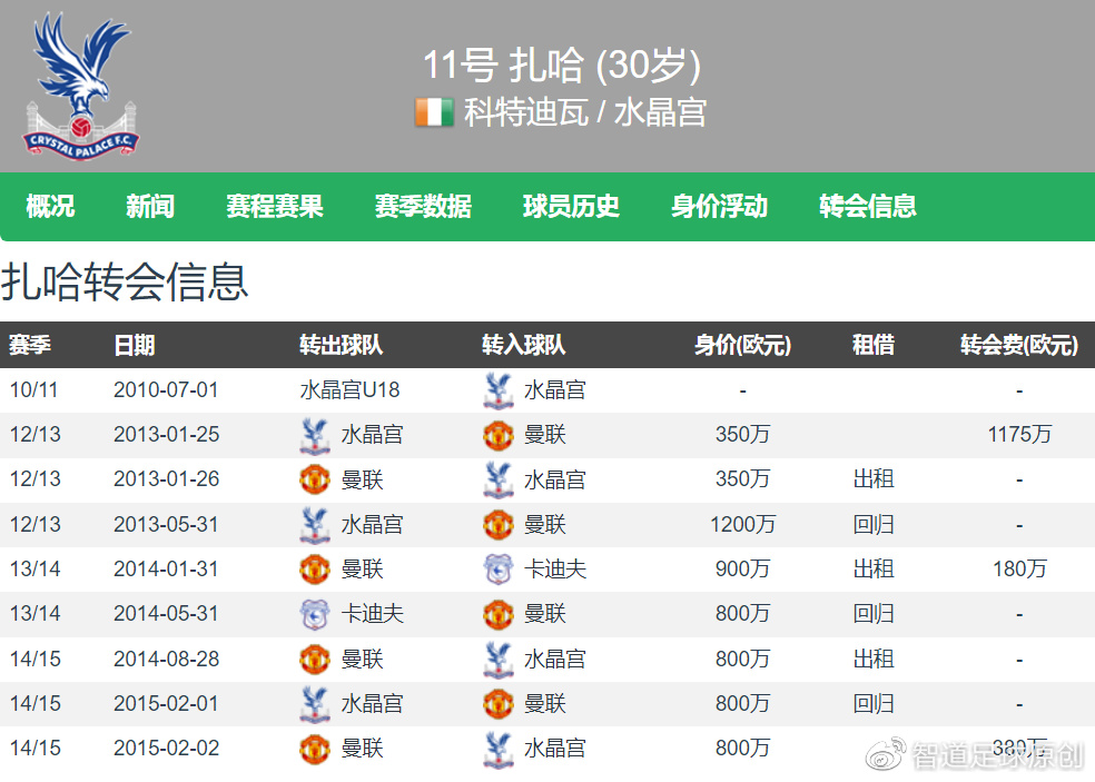扎哈是一位出自水晶宫青训的球员,曾加盟过曼联,但发展未达预期又重回水晶宫效力,至今各项赛事已经参加超过400场,双方的合同至本赛季结束后到期。扎哈目前在水晶宫的周薪为13万英镑,若接受水晶宫开出的20万英镑周薪的续约合同,扎哈将会成为水晶宫队史薪水最高的球员。