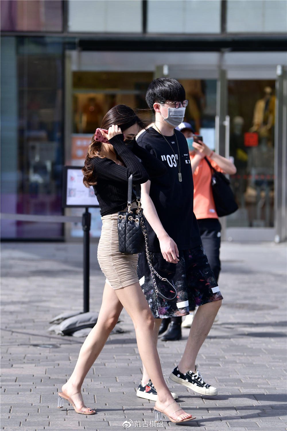 美女身材匀称苗条,因为身边的帅哥身材很高,所以看着美女身材不是很高挑,但是身材比很好,很会搭配,你会觉得这样的风格很生活化,却有着一点点不一样的味道,黑色单肩包,菱形的压纹设计,增加层次感,可以拎在手里,也可以挂在肩上,而且皮质带来不一样的质感,起到了很好的点缀效果,喜欢搭配,就多尝试一下,也许会有很大的收获呢。