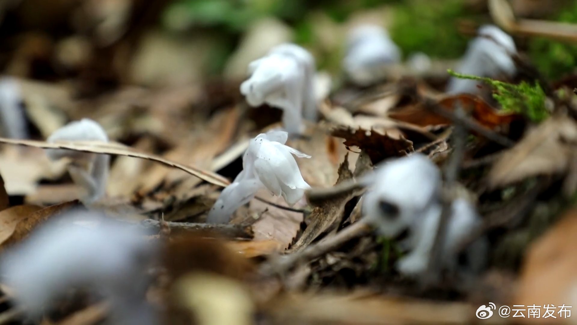 近日,云南白马雪山国家级自然保护区管护局维西分局工作人员巡护过程中,在塔城片区2900米海拔的密林发现百余株水晶兰。(迪庆州委宣传部)