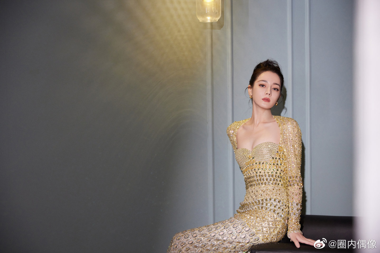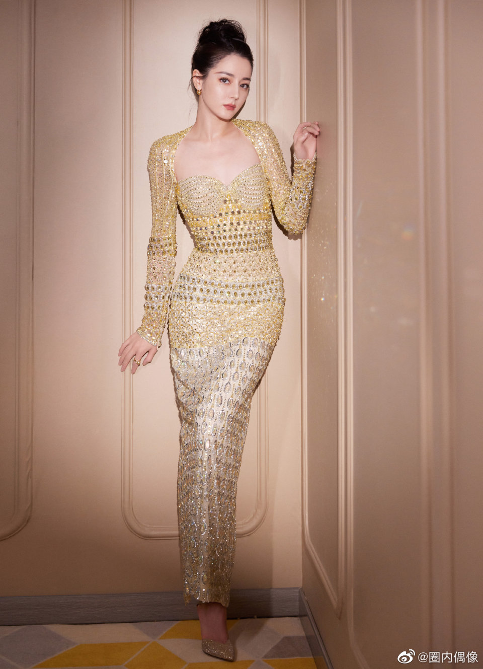 金色水晶亮片礼服,盘发温婉尽显优雅气质,露背可太美了