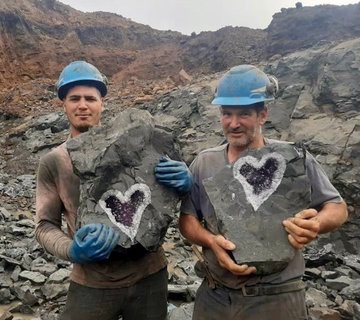 “劈开的后紫水晶,里面有一对相配的心”(photo:Marcos Lorenzelli)