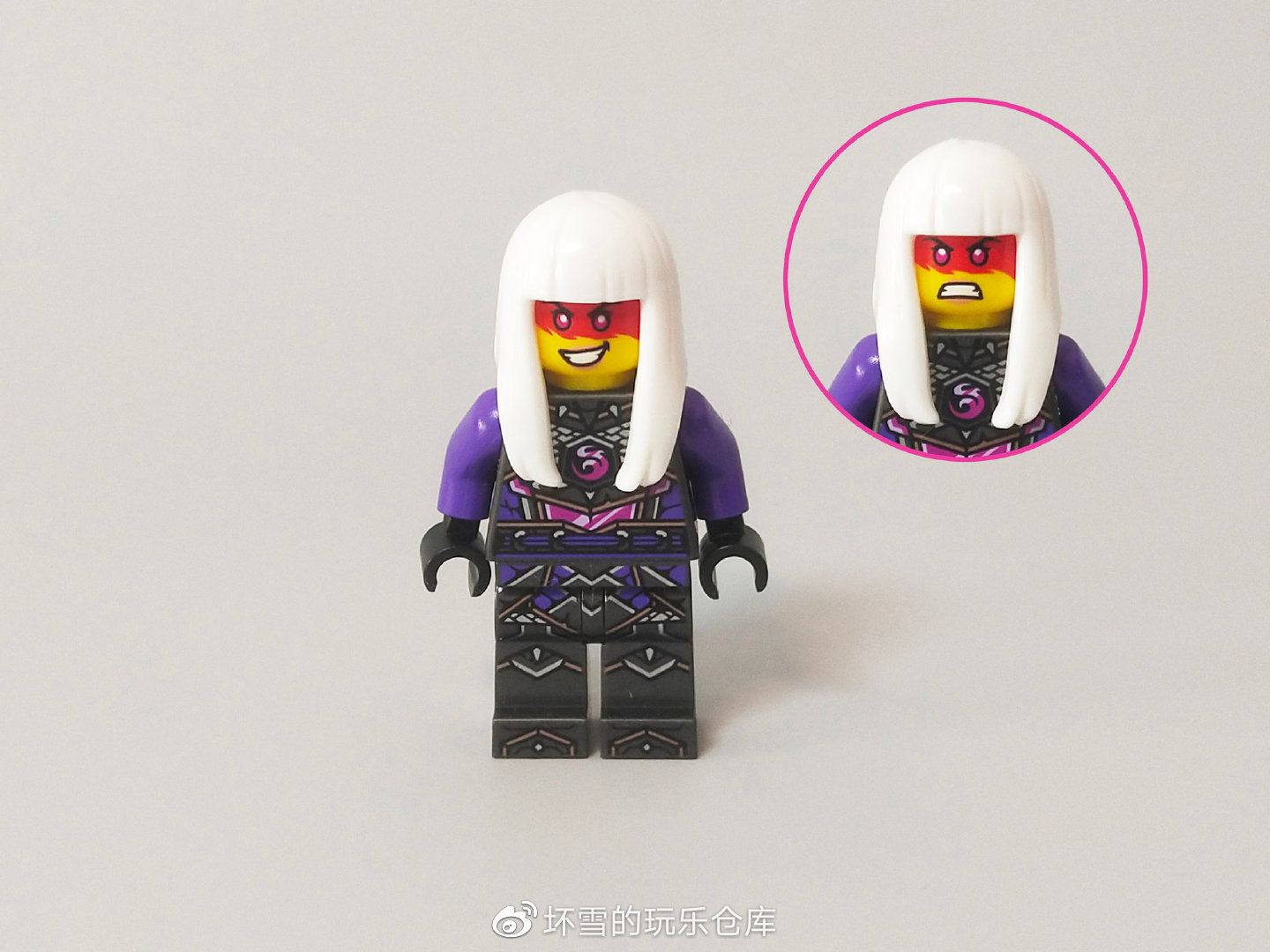 水晶之王人仔也是该套装的独占人仔,另外一个版本是四只手臂的最终形态,出现在套装71771和71774里,这款人仔除了多出一个躯干和双手以外,头部的鬼怪头盔的角也不一样。