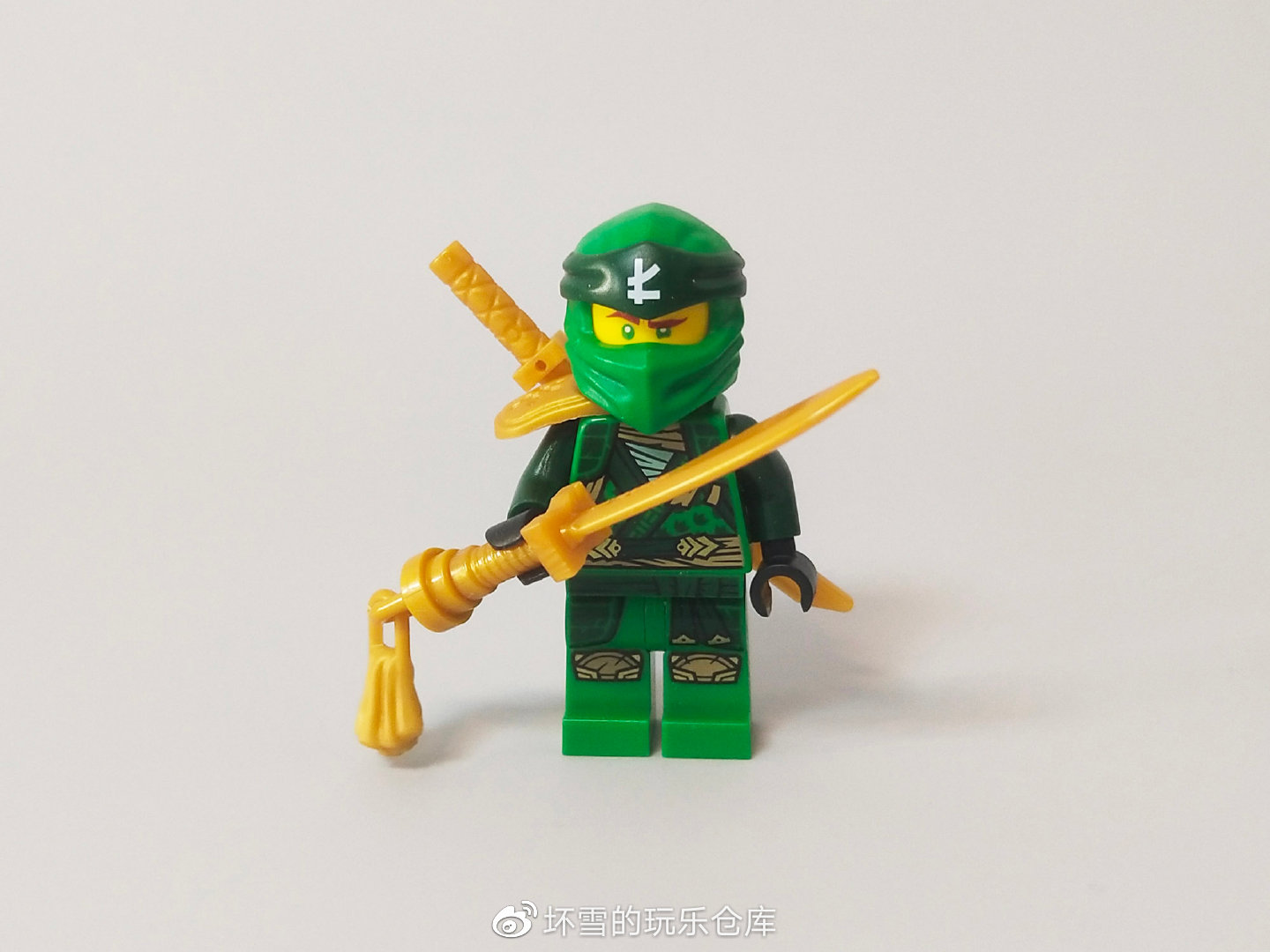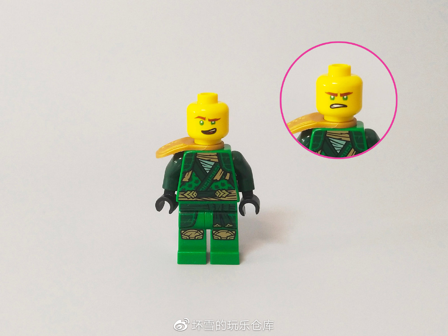 第一个人仔是绿色忍者劳埃德,他穿着新款的忍者服,佩戴单边的金色肩甲,这是他在结晶季的新装扮。劳埃德的头部依然是他特有的双面造型,已经出现超过四十套含有劳埃德的套装里了。
