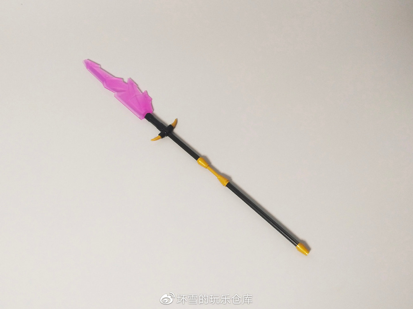 作为一个终极反派,武器当然肯定不能含糊,这款套装为机甲提供了一杆长柄武器,又像十文字枪又像大砍刀,达到了31厘米长,前端有类似十文字枪的小枝,刀刃同样是透明的水晶刀刃效果。