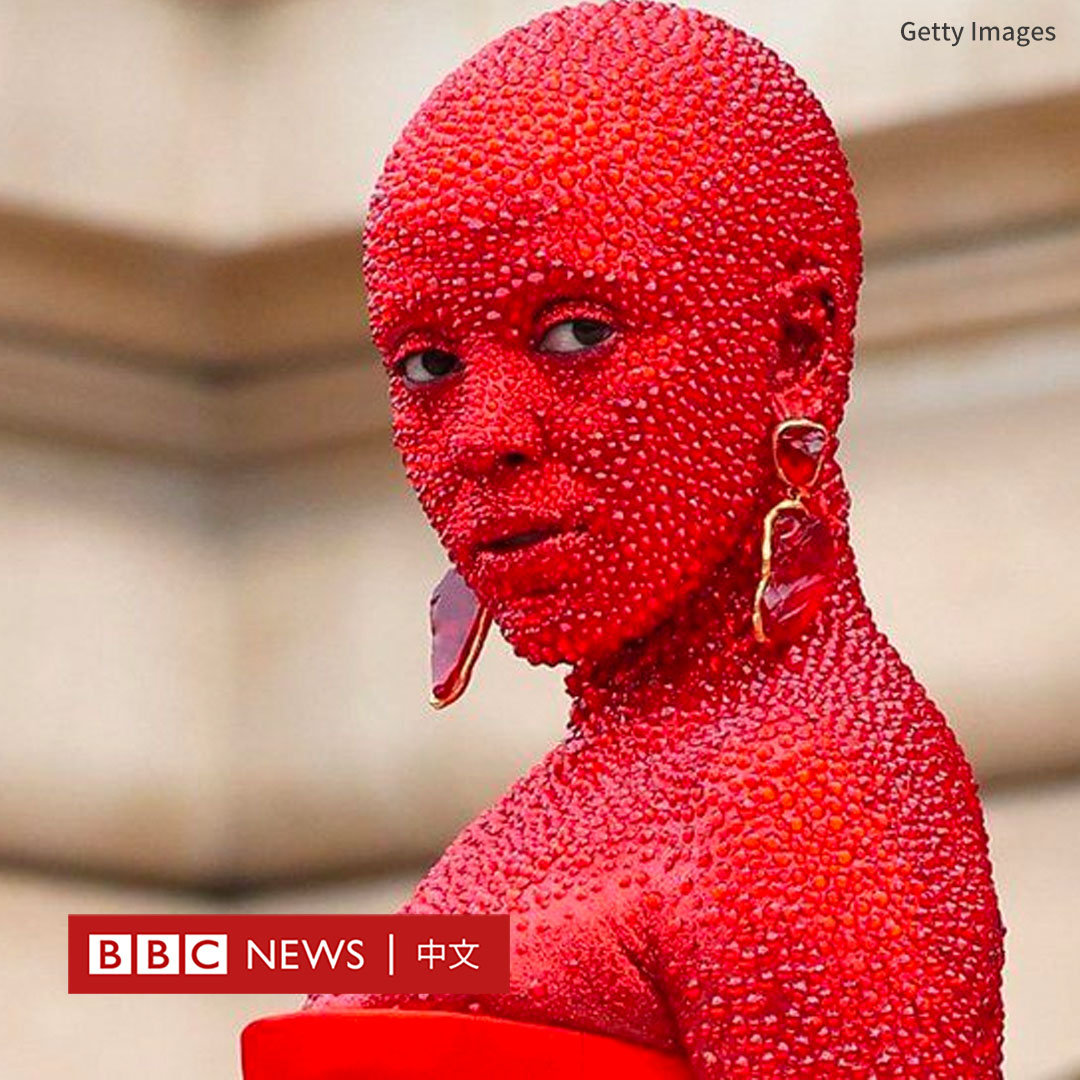 Doja Cat这个贴有3万颗施华洛世奇水晶的造型真的很像一颗荔枝……