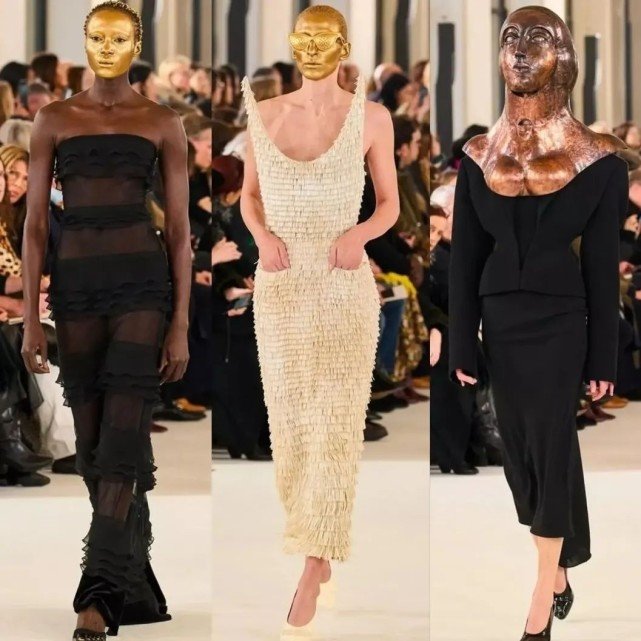 尽管曾经夏帕瑞丽是一个跟香奈儿并驾齐驱的品牌,主打优雅端庄的高级女装,但现在在美国设计师丹尼尔·罗斯伯里(Daniel Roseberry)的带领下,走起了“超现实主义艺术风”,模特脸上的那些很是怪异的金属面具,就是他的创意之一。