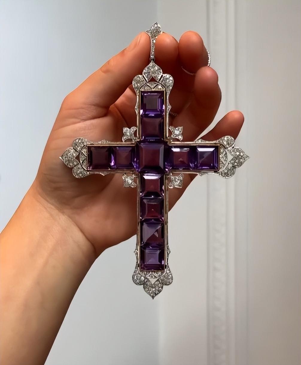 这款紫水晶十字架项链据说是黛妃生前最喜欢的作品之一,由宫廷珠宝商Garrard 于1920 年代设计,重5.25 克拉,镶有方形切割紫水晶和圆形切割钻石,采用花卉风格打造,在1987 年黛妃曾经佩戴它搭配紫色天鹅绒礼服出席非营利组织Birthright 的慈善晚会。据了解,该项链仅有黛妃戴过,黛妃去世之后就再也没有出现在公开场合。