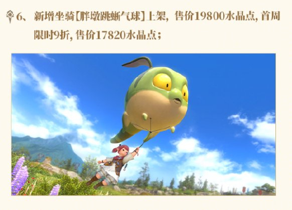手游《最终幻想14 水晶世界》发布2.2.0版本更新笔记,11月20日正式更新,除了游戏内容的更新外,商城也进行了一批上新,这次依旧是有手游的原创商品,比如胖墩跳蜥气球坐骑、街头涂鸦时装、魔科学滑板的新涂装,新发型:蝴蝶结长辫、湿感背头,以及演技教材:太极拳······太极拳?!