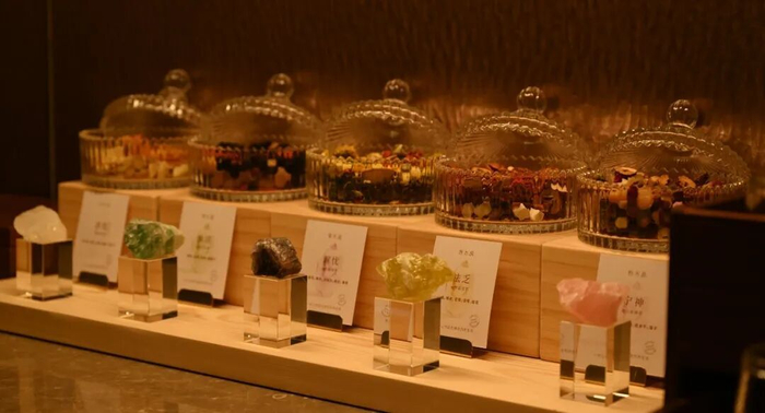 吃饱还要喝足。跟很多人一样,我第一次听说水晶酒店的容光焕发养颜茶,其按照五色水晶取名,只觉得神乎其神,以为这只是单纯满足现代人对玄学的追捧。