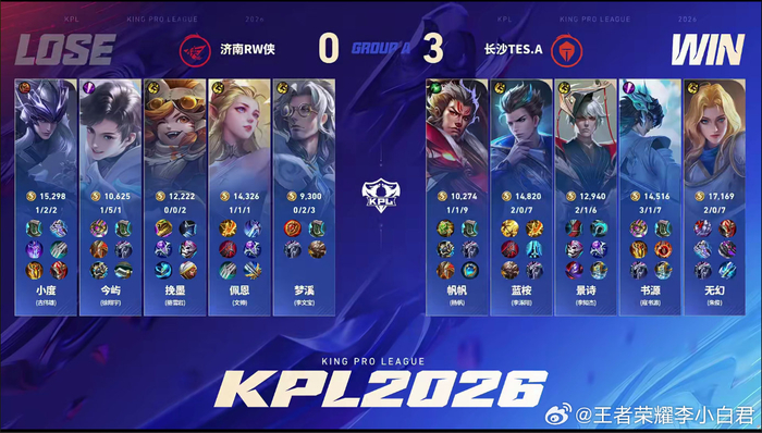 TES火力全开三比零拿下!9分钟帆帆张飞大招配合到队友击杀掉对面元坦,10分钟龙团TES持续进攻,书源大司命拿下双杀,12分钟TES极限保住狄仁杰并反杀对面马超,18分钟TES再出手击杀掉对面元坦,21分钟Tes拿到风暴龙王,并持续进攻成功零换四后一波推掉水晶,恭喜TES拿下第二轮首胜!